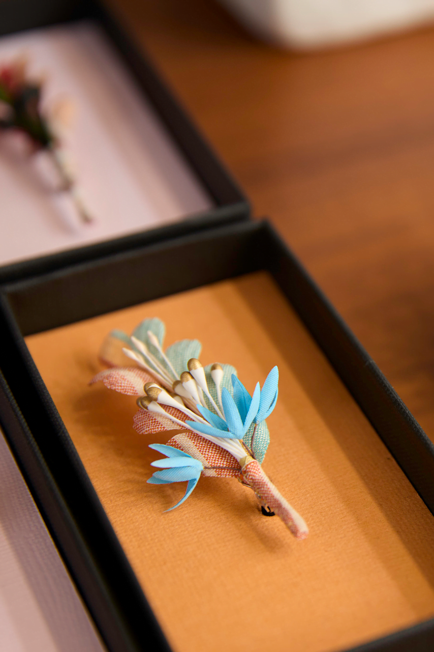 La galerie propose également des foulards de créateurs ainsi qu’une sélection d’alliances originales.