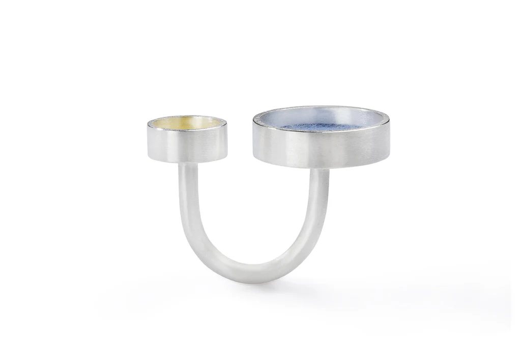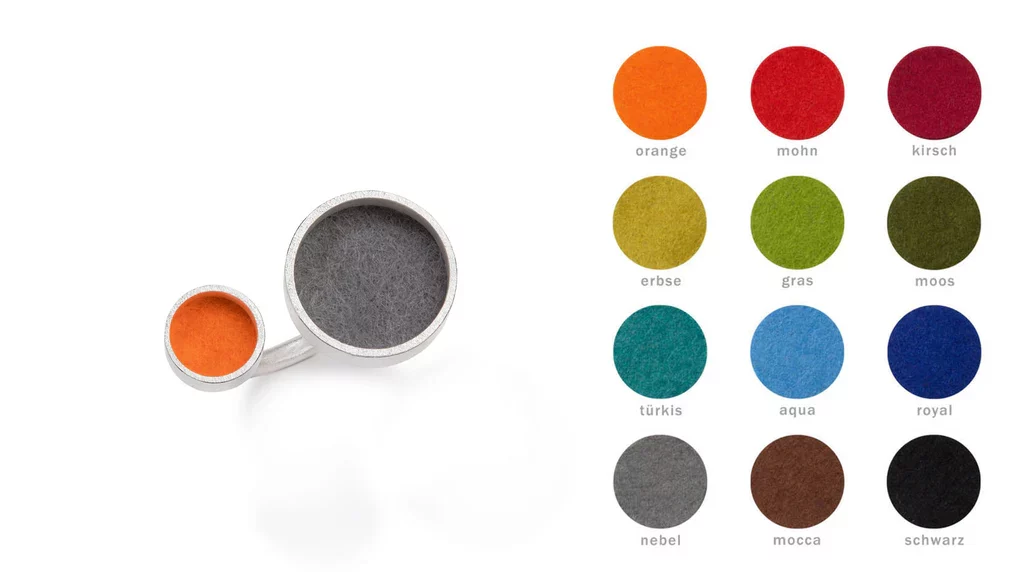 Bague double en argent 925 brossé, avec pastilles de feutre de laine interchangeables.