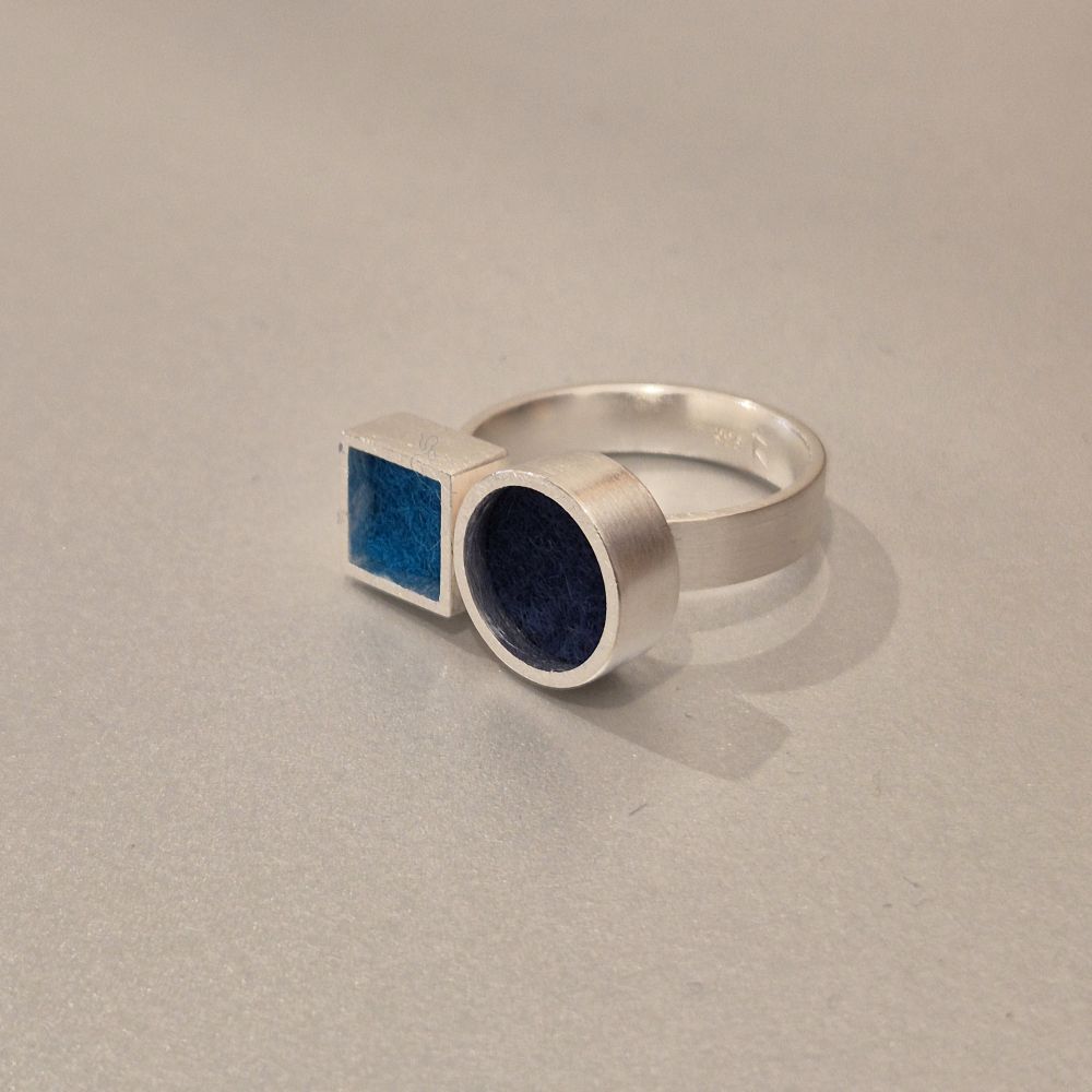 Bague en argent 925 brossé, avec pastilles de feutre de laine interchangeables.