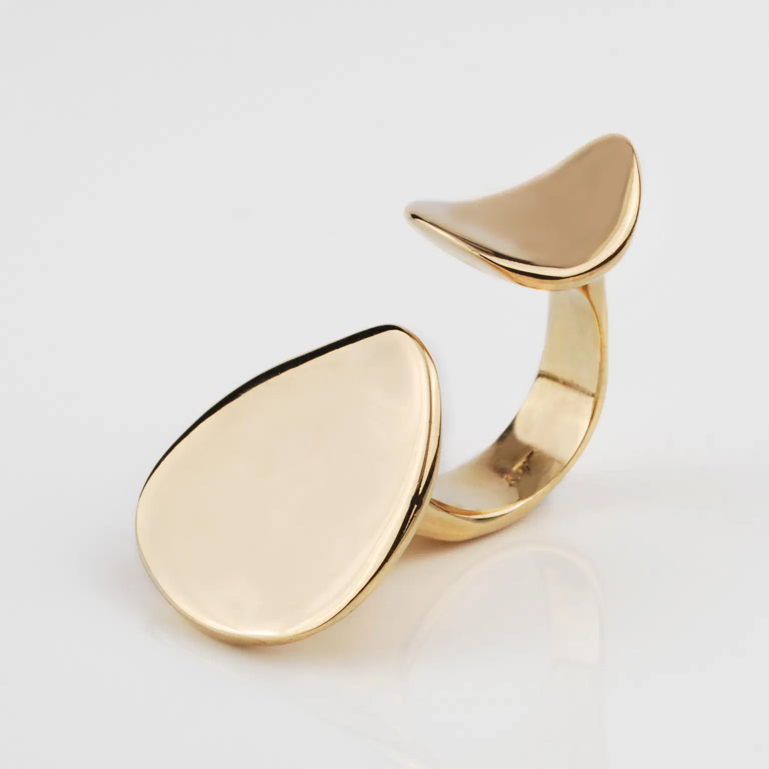 Bague en bronze, à la forme indéterminée, linéaire, lumineuse et légèrement concave au centre.