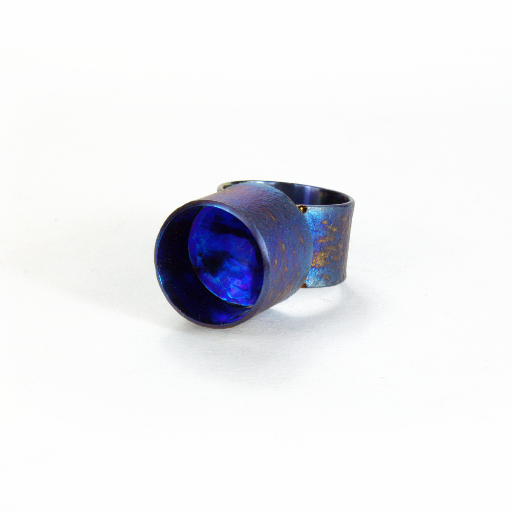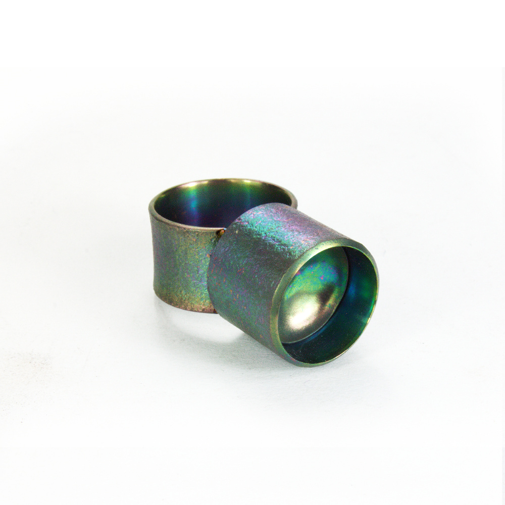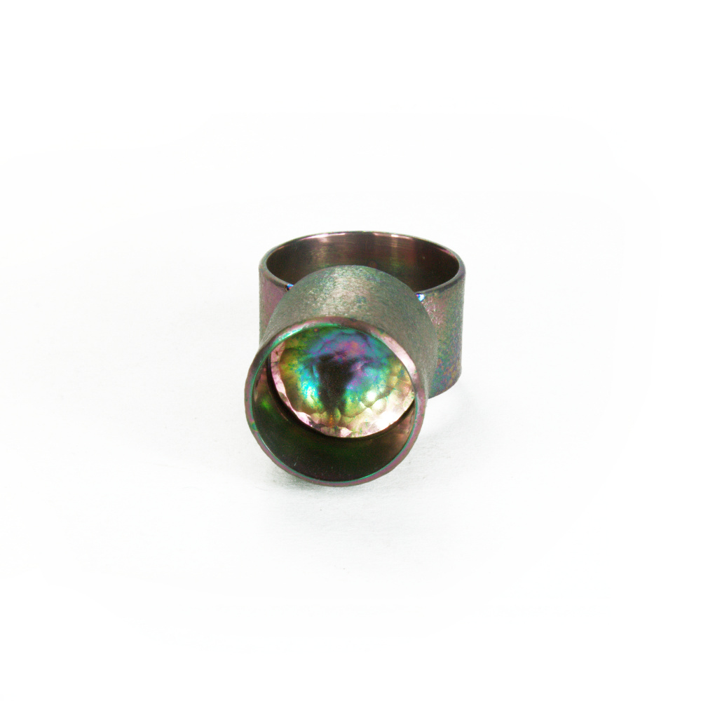 Bague en titane, partiellement martelé et poli. Une version très contemporaine du solitaire !
