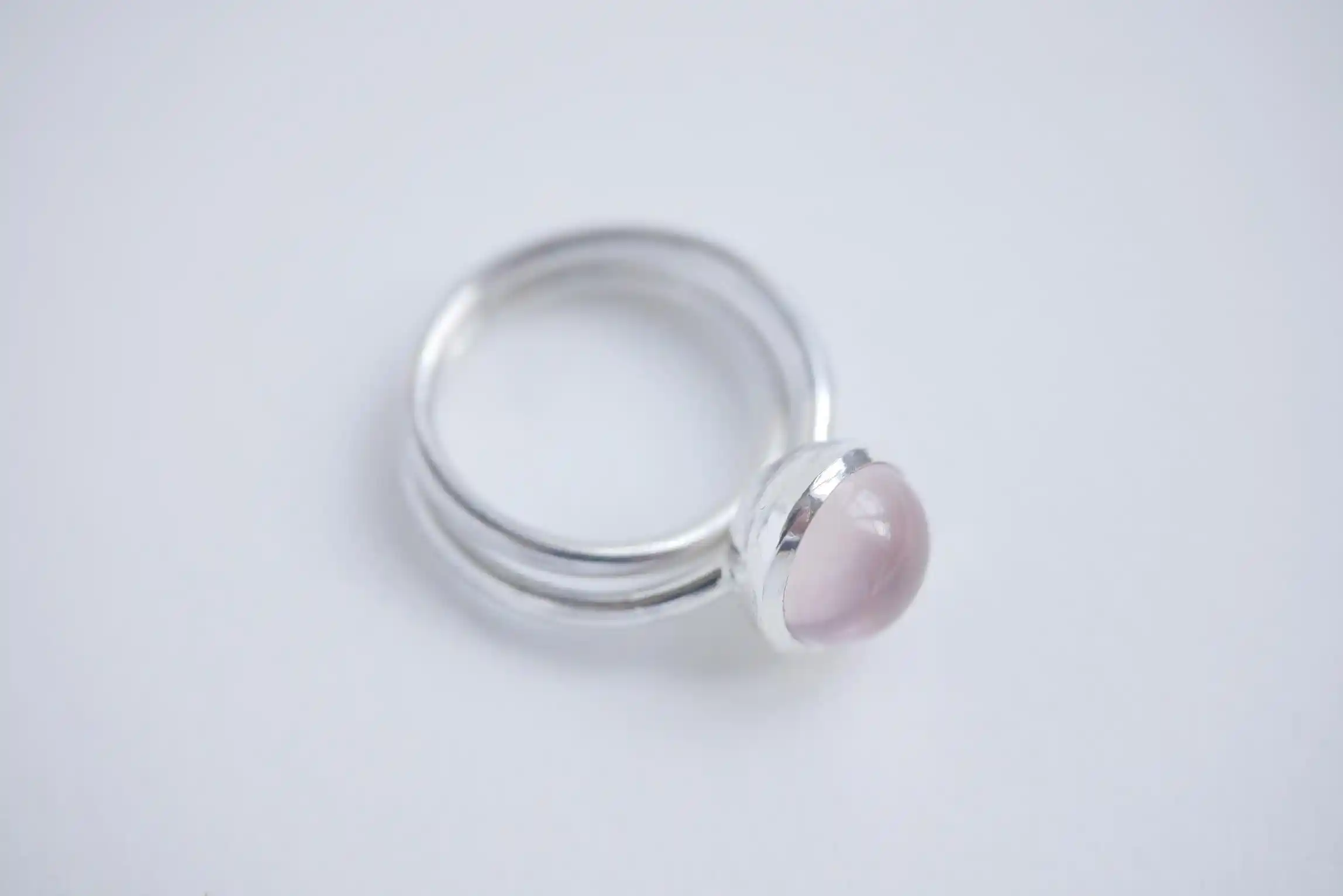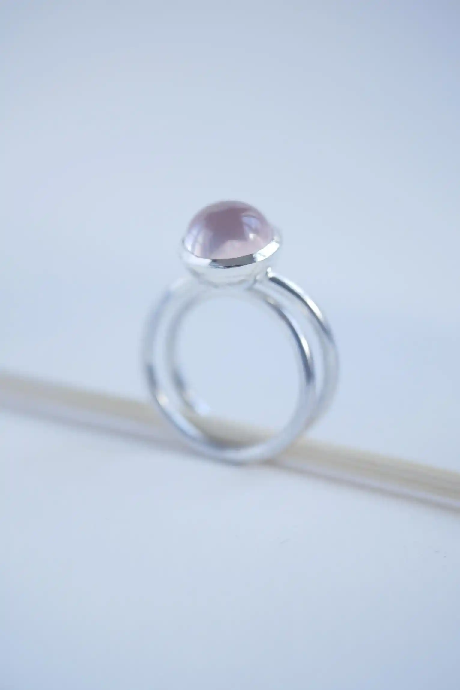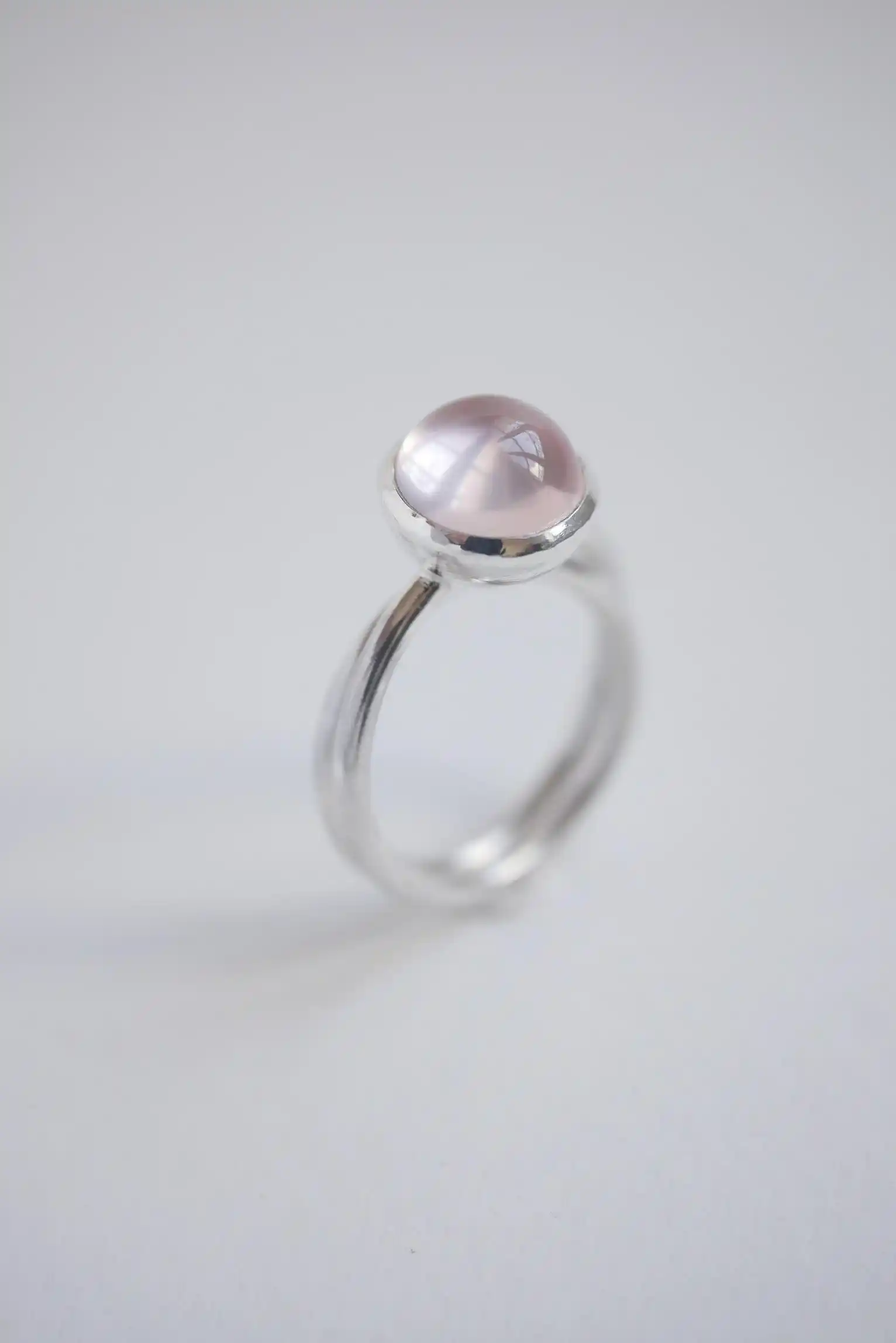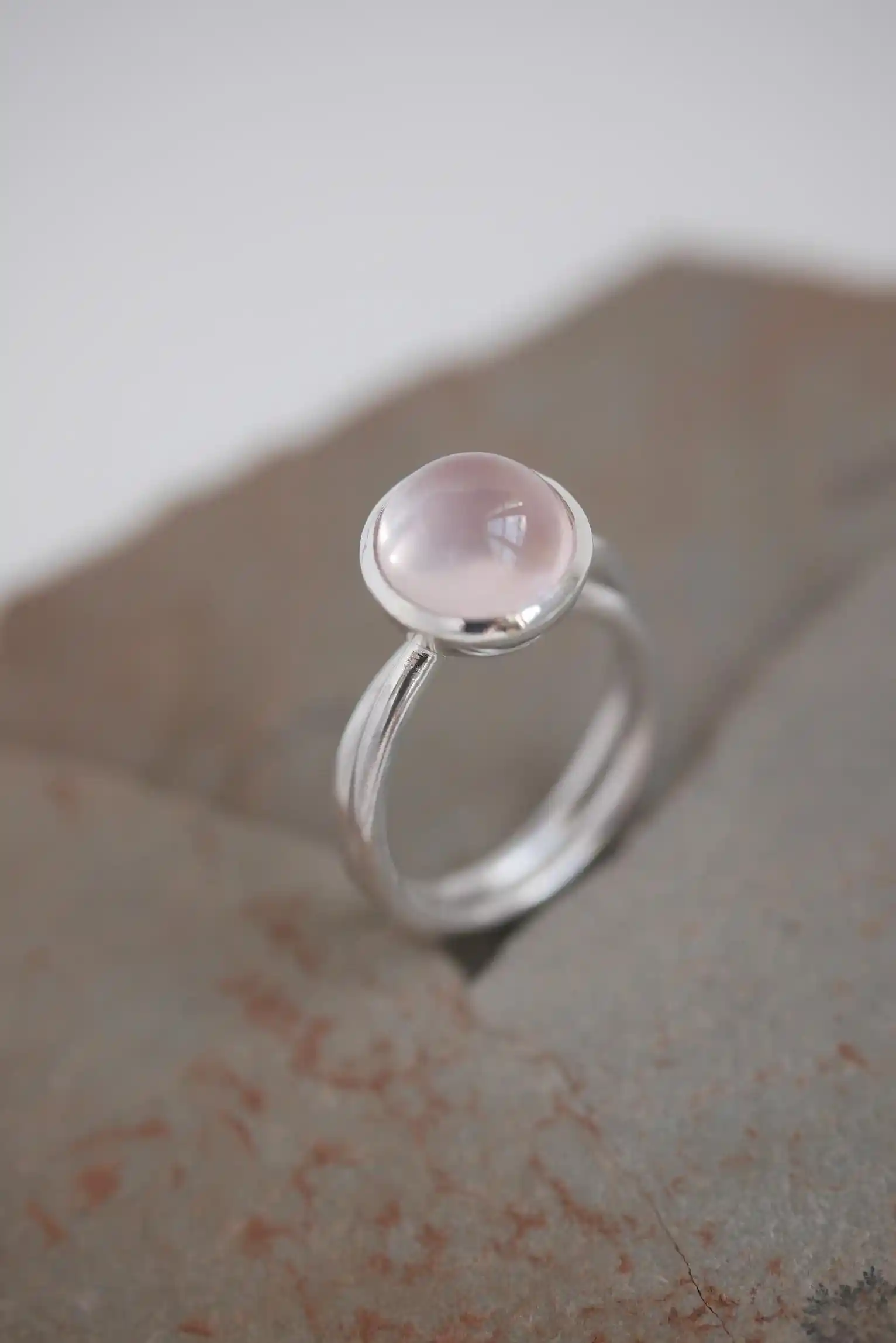 Bague en argent 925 et cabochon de quartz rose.