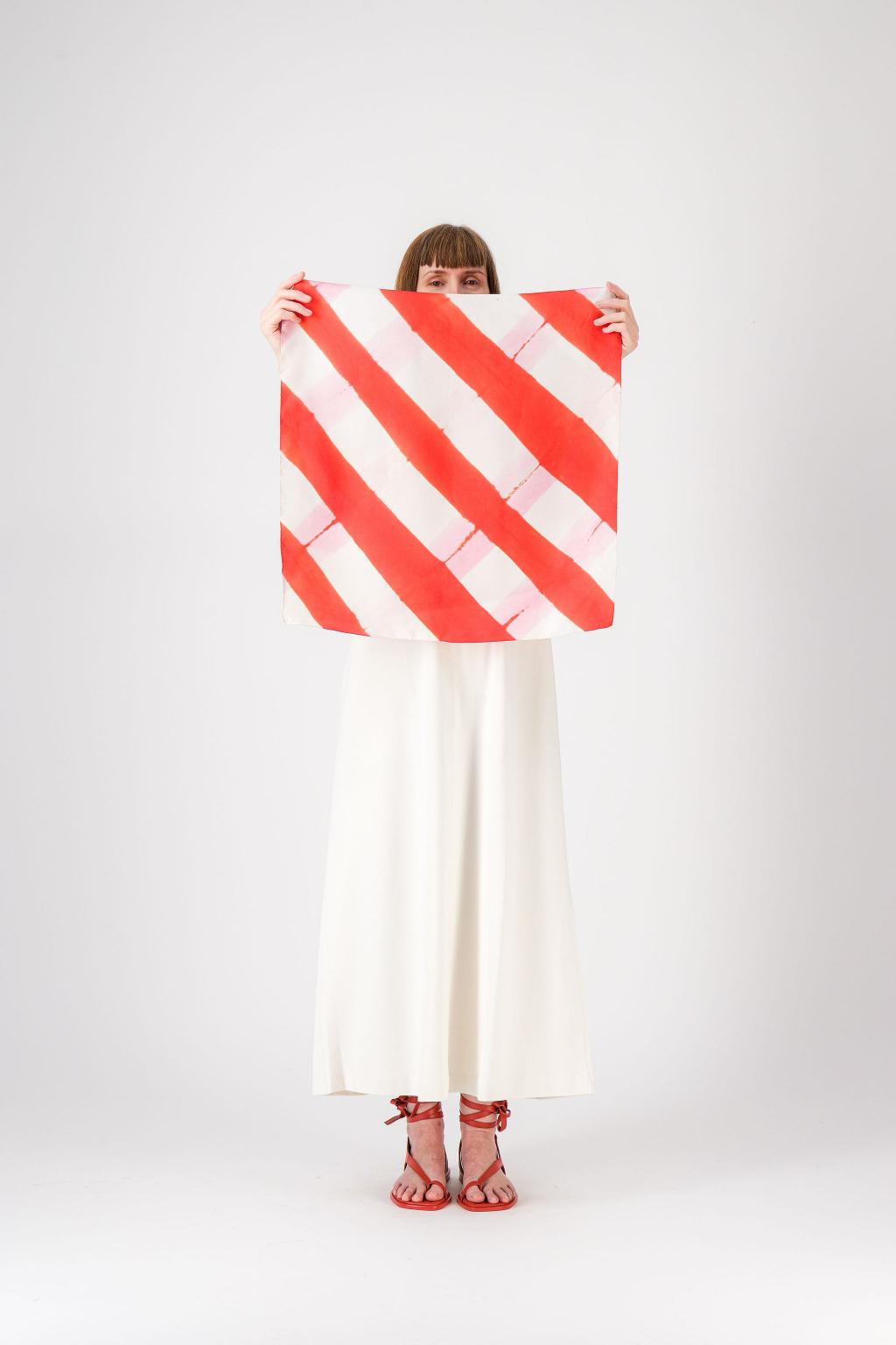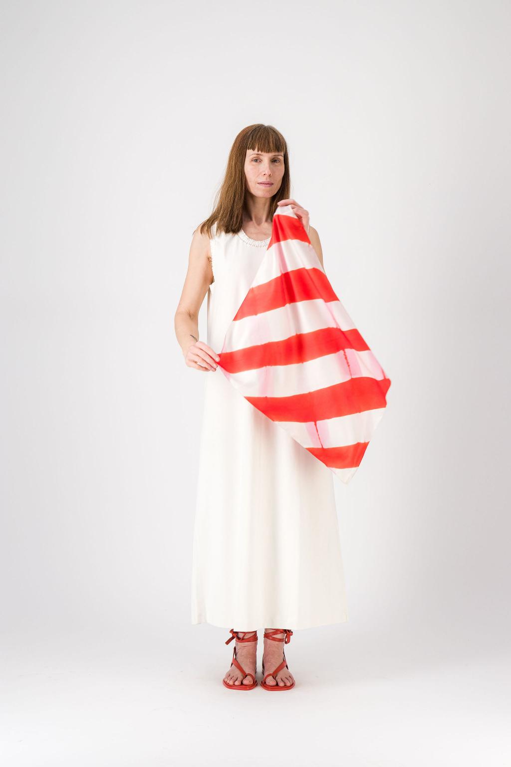 « PIQUE-NIQUE », un foulard qui nous transporte en été, créé en teinture artisanale.