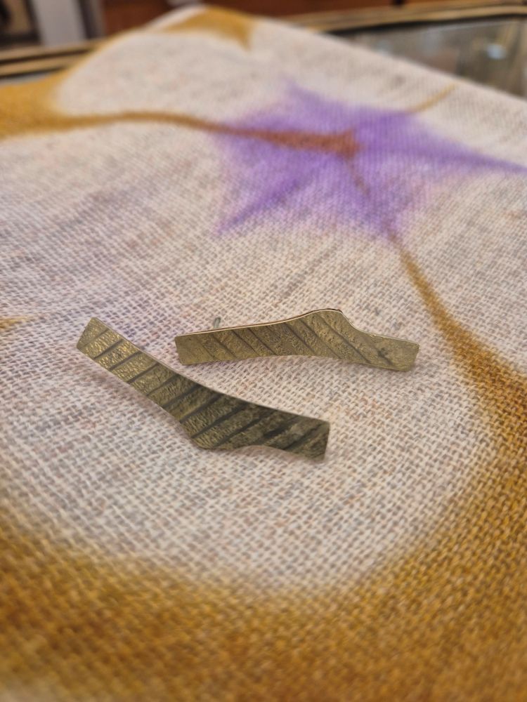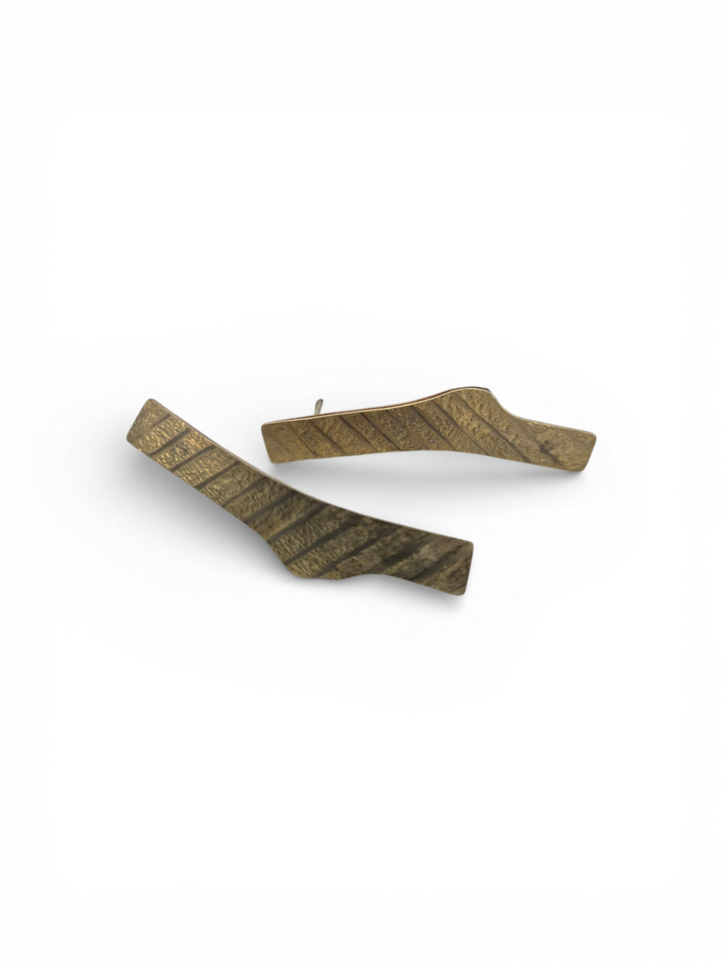 Boucles d’oreilles en titane anodisé et gravé, bois de platane. Couleur : vert jaune