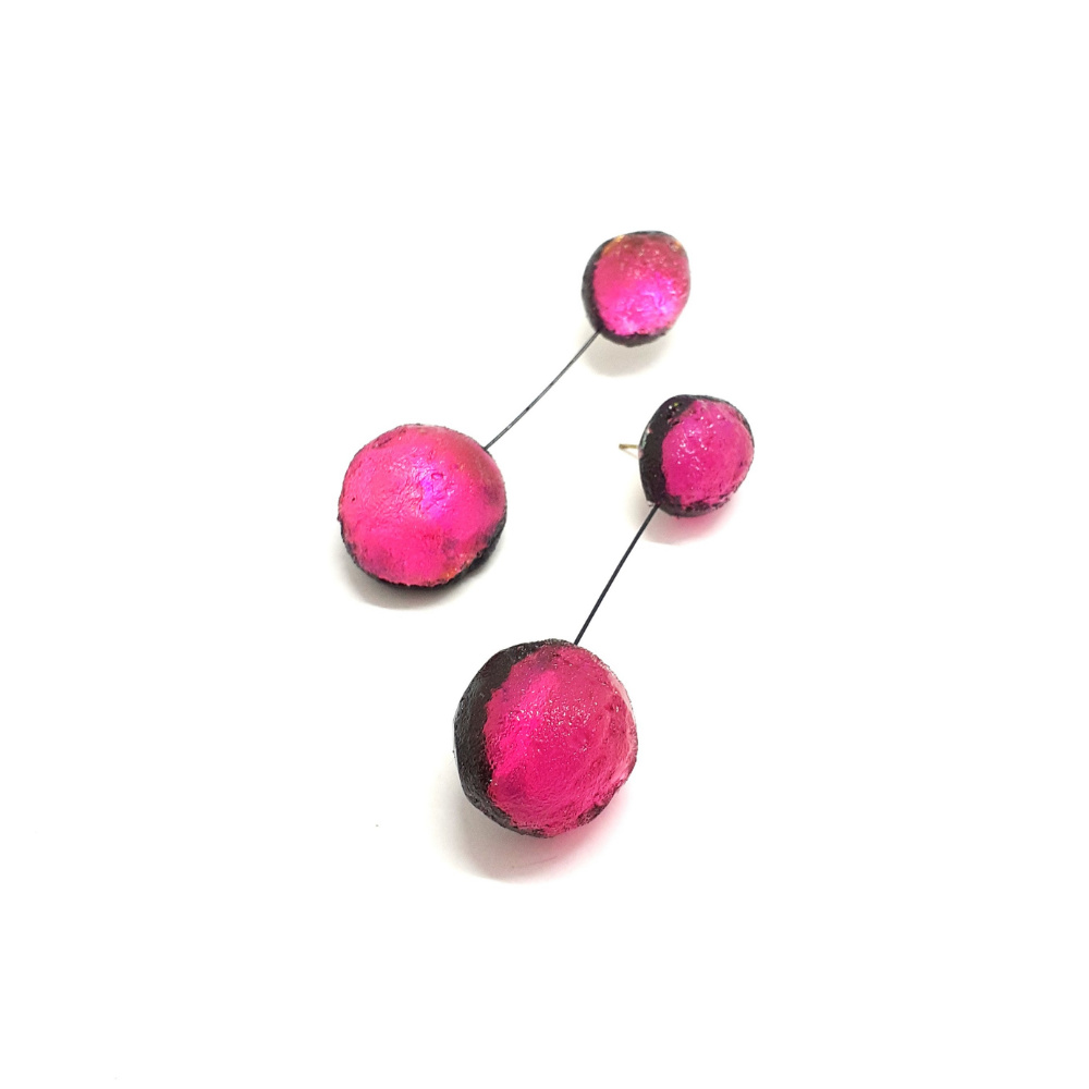 Boucles d’oreilles en résine rose vif, reflets irisés.