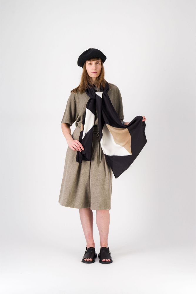 « ORIGAMI », une étole taillée dans un luxueux twill de soie.