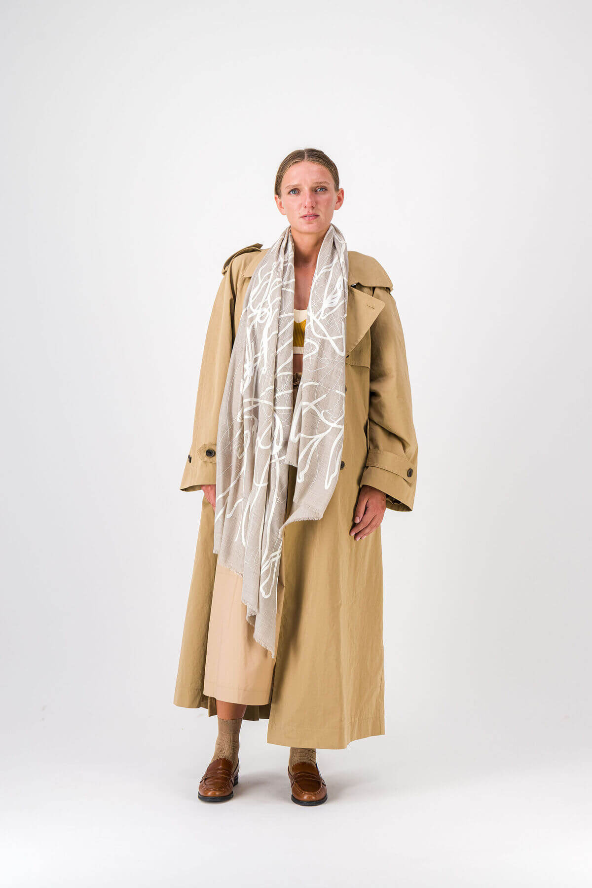 Étole en 100% mérinos, ultra douce, tissée et brodée à Srinagar.