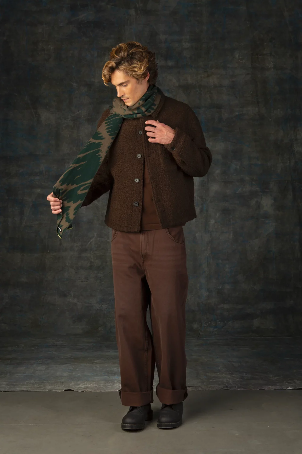 Écharpe en maille jacquard en 100% laine mérinos extra-fine et douce.